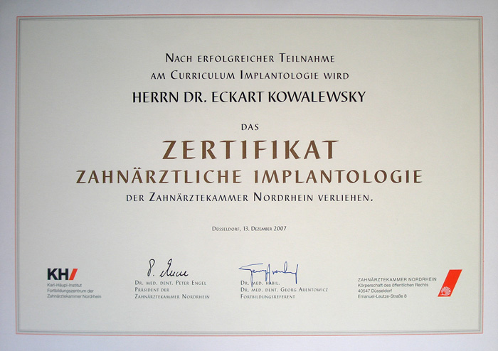 Ist ein Zahn verloren gegangen, muss keine Lücke bleiben. Mit Hilfe künstlicher Zahnwurzeln, sogenannter Implantate, können sowohl einzelne Zähne als auch Zahngruppen ersetzt werden. Das natürliche Aussehen und die Kaufunktion werden optimal wiederhergestellt – als wären es die eigenen Zähne. Indem die Belastung auf dem Implantat liegt, wird zudem der Kieferknochen vor einem Abbau geschützt. Selbst bei wenig Knochen kann heute durch Aufbau der Knochensubstanz mittels Knochenersatzmaterial oder auch eigenem Knochen optimaler Halt für entsprechende Implantate erzielt werden. Auch bei Prothesenträgern lässt sich durch Implantate Abhilfe schaffen – beispielsweise bei schlechtem Sitz und schmerzhaften Druckstellen – bis hin zu einer rein auf Implantaten getragenen Prothese. Das Lebensalter des Patienten spielt hierbei keine Rolle – man ist nie zu alt für einen implantatgetragenen Zahnersatz.